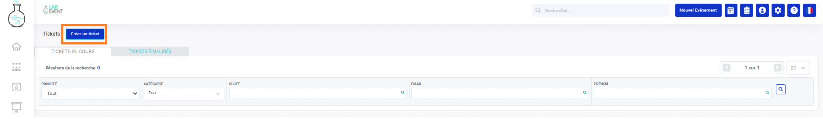 b/ Ou depuis la liste de tickets, cliquez sur créer un ticket